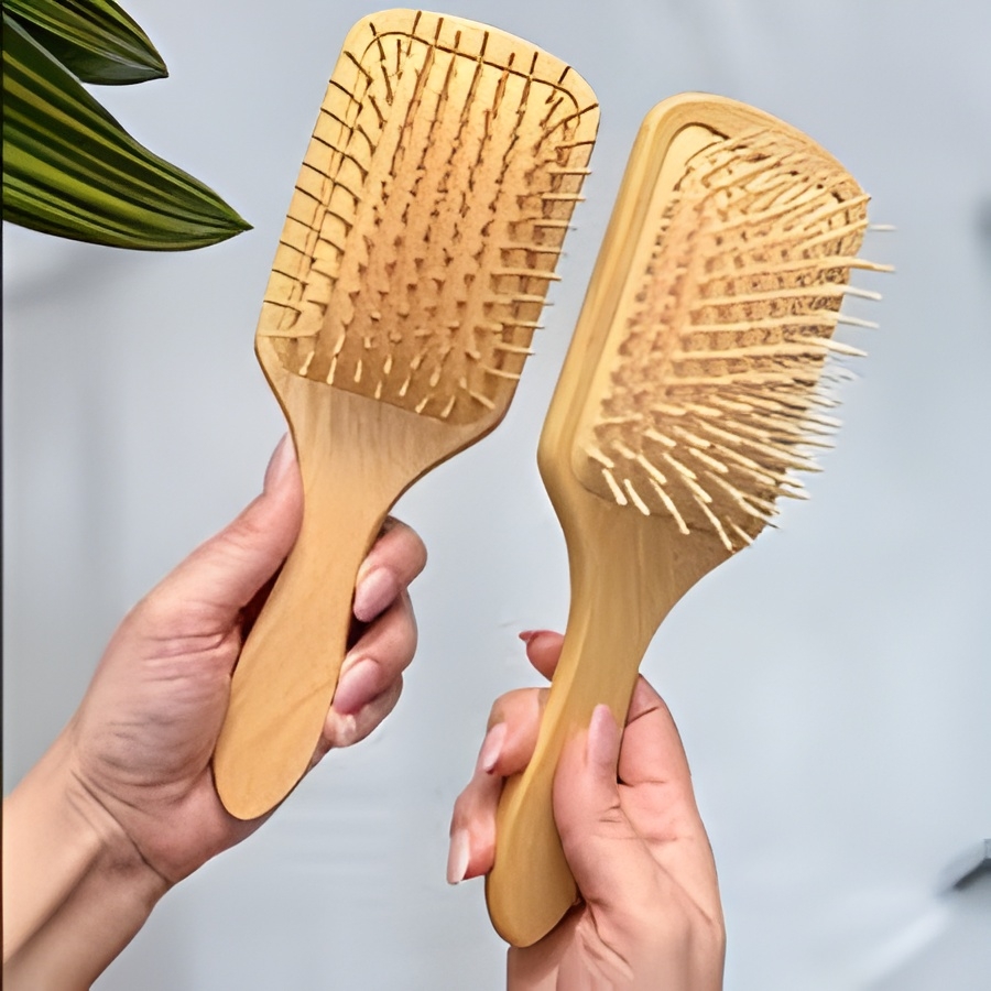 برس مو مدل چوبی طرح مستطیلی جنس بامبو