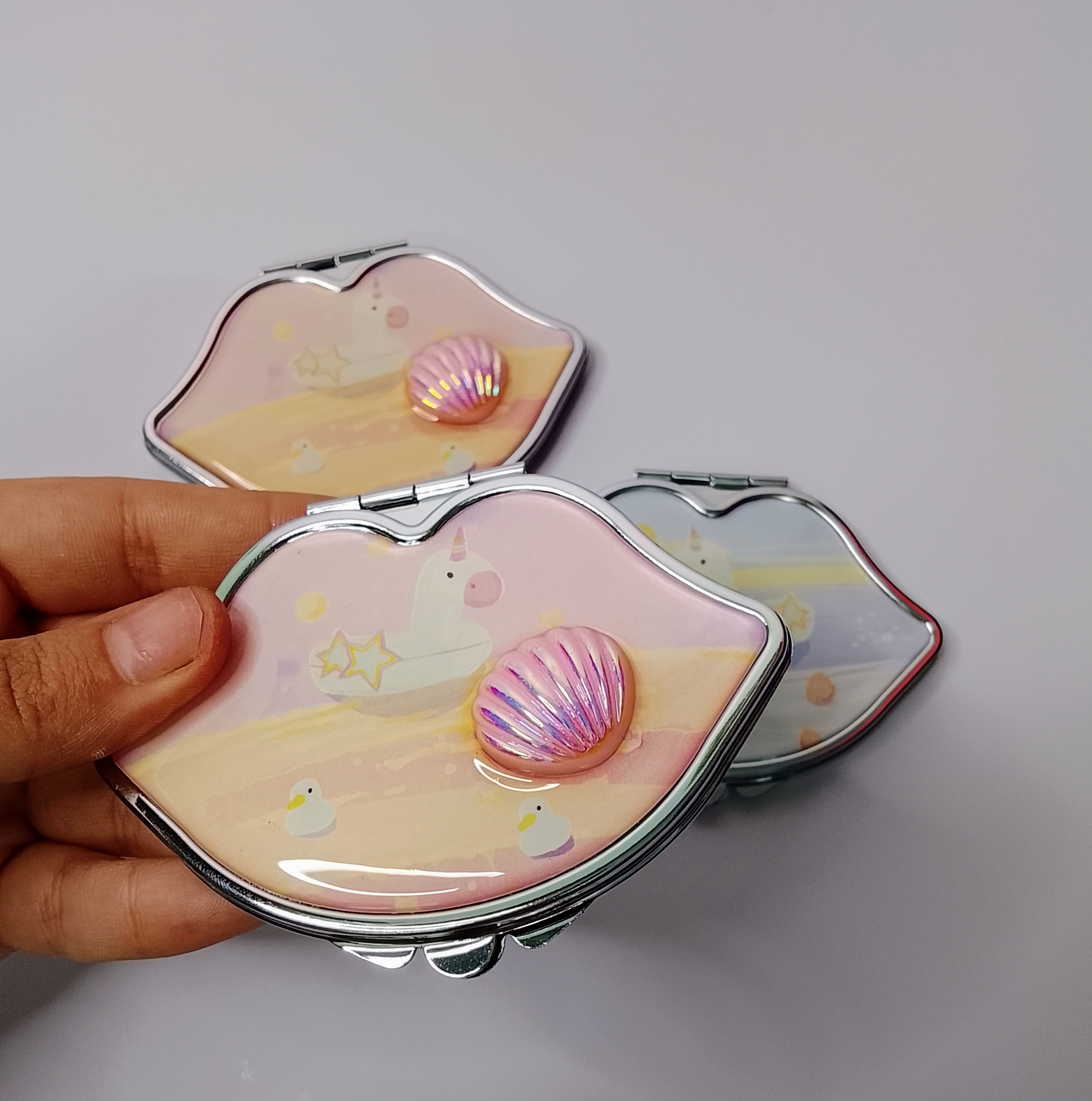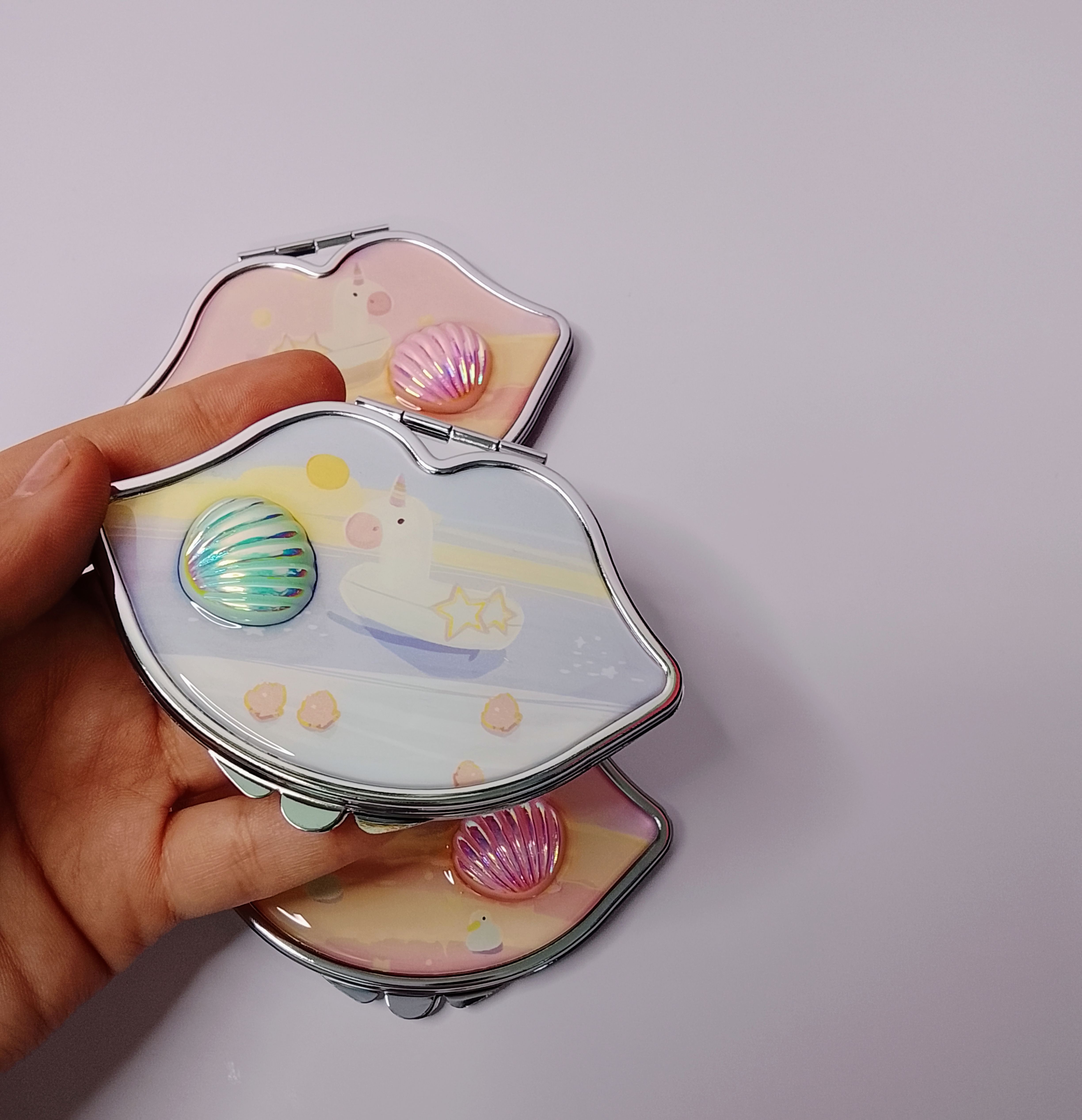 آینه مدل لب صدفدار یک آینه جیبی فانتزی و خاص است که با طراحی لبمانند و جزئیات صدفی براق، جلوهای شیک و دخترانه دارد. این آینه با اندازه جمعوجور بهراحتی داخل کیف دستی، کیف آرایش یا جیب قرار میگیرد و برای استفاده روزمره، سفر یا تمدید آرایش بسیار کاربردی است.