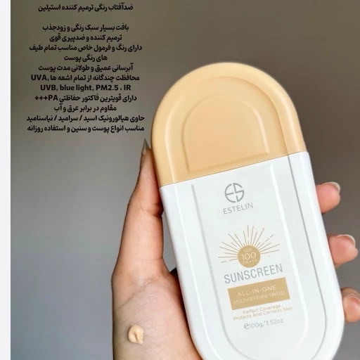 ضد آفتاب تینتی چندمنظوره Estelin SPF 100 یک انتخاب حرفهای برای محافظت کامل از پوست در برابر اشعههای مضر خورشید است. این ضد آفتاب با فرمولاسیون پیشرفته و دارای رنگ طبیعی، بدون ایجاد سنگینی یا ماسیدگی، پوست را یکدست و شاداب نشان میدهد.